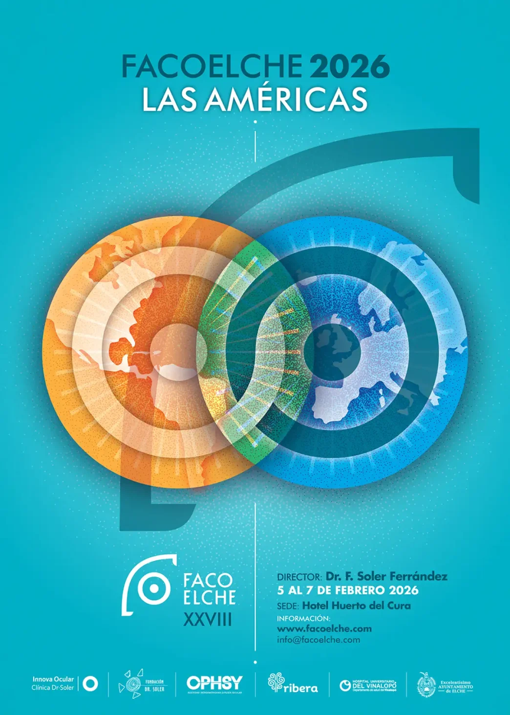 Como todos los años, las instalaciones del Hotel Huerto del Cura, de Elche, acogieron FacoElche en sus fechas habituales, es decir donde esté el primer viernes de febrero, por lo que este año tuvo lugar los días 5, 6, y 7 de dicho mes. Se desarrolló con su esquema general habitual de sesiones generales, simposios paralelos, cirugía en directo, etc., y contó con un título muy sugerente: «Las Americas». Este lema simboliza un abrazo entre continentes estrechando aún más los lazos que unen a FacoElche con la Oftalmología de las Américas, acercándola además a la de Europa en un mismo espacio de encuentro.